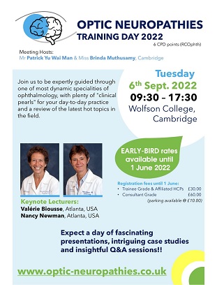 Mr Patrick Yu Wai Man and Miss Brinda Muthusamy invite you to join them at the 2022 Optic Neuropathies Training Day The assembled Faculty brings together an impressive…