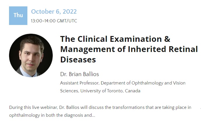 During this live webinar, Dr. Ballios will discuss the transformations that are taking place in ophthalmology in both the diagnosis and treatment of inherited retinal…